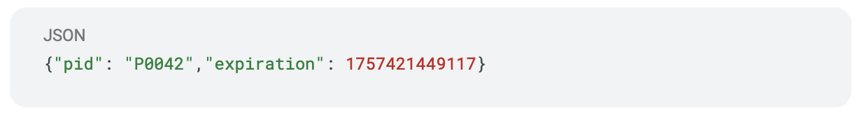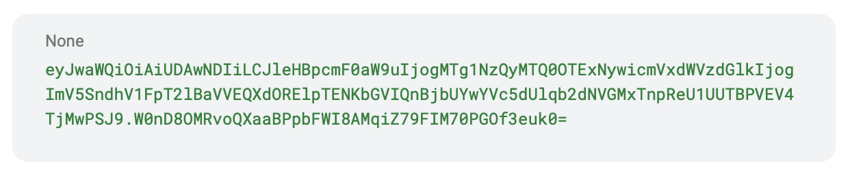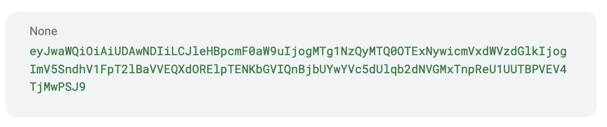 We use the payload of the expired token as the request ID. We then Base64 encode this entire payload and we get: