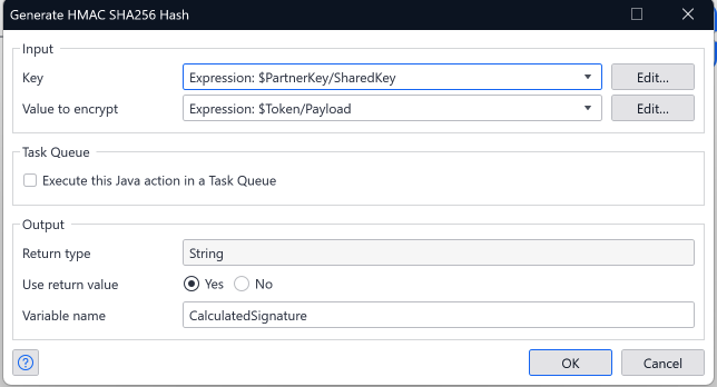 In order for us to create a valid Signature [S2] we need to know the Token Payload and the Sessionkey [S1]. If we explore the microflow, we see that the Token Payload is the first part of the Bearer token (the part before the .) So we can influence this. If we know the Session Key, then we can create a valid signature.