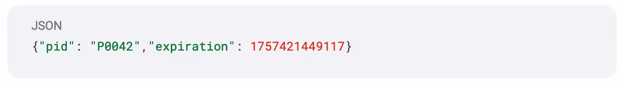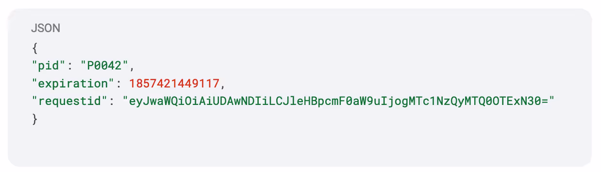 We use the payload of the expired token as the request ID. We then Base64 encode this entire payload and we get: